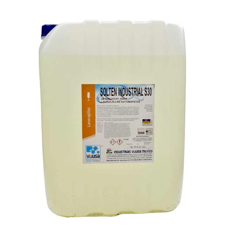 El SOLTEN INDUSTRIAL S30 es para uso exclusivo en Lavalozas automáticas, se dosifica a través de equipo automático. La dosificación podrá variar en función de las condiciones específicas de operación de los equipos, de la suciedad a retirar y de las condiciones del agua.